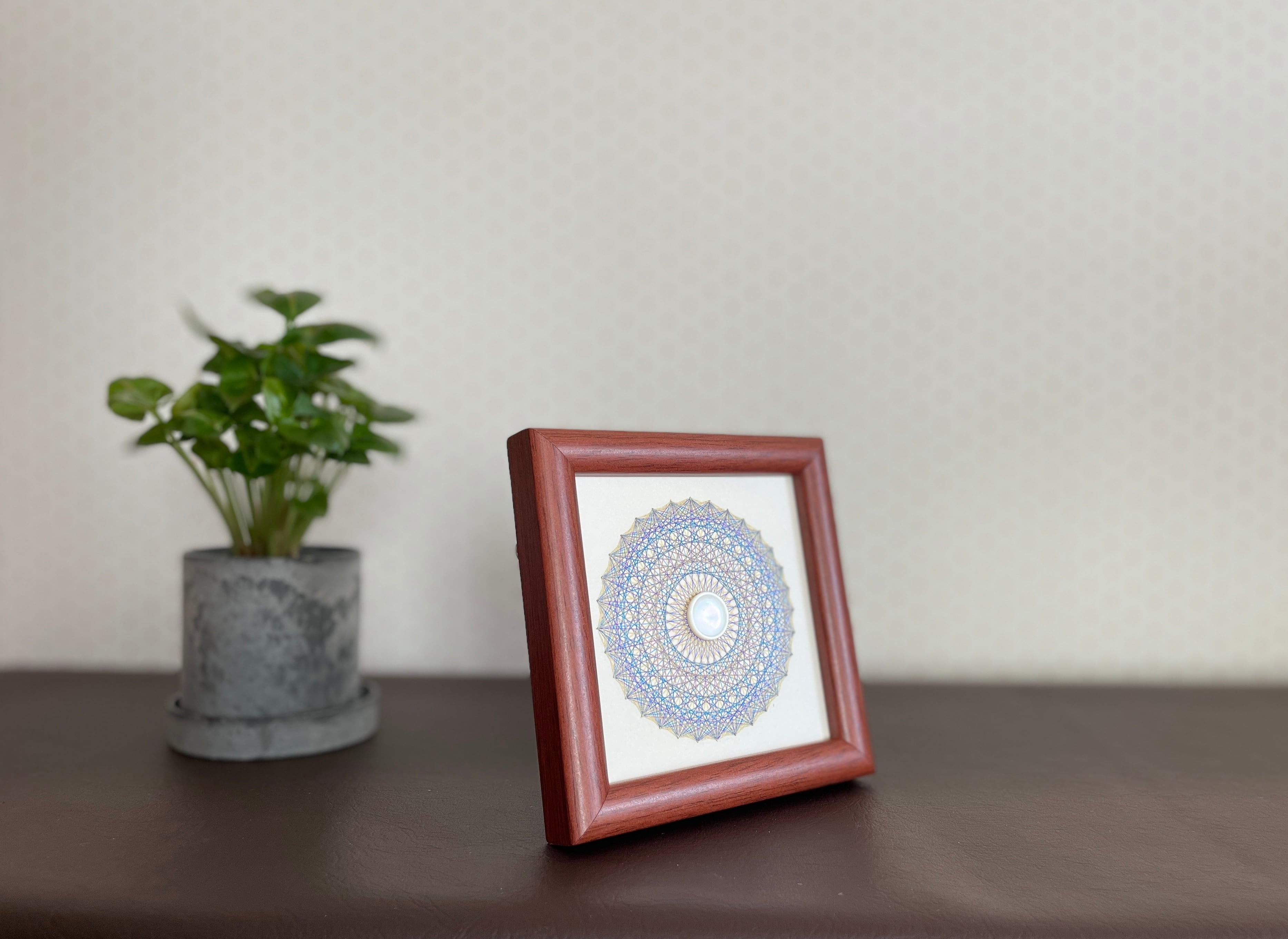 mandala wonder mini No.1は、手のひらサイズの木製フレームに収められた2枚ペアの曼荼羅です。